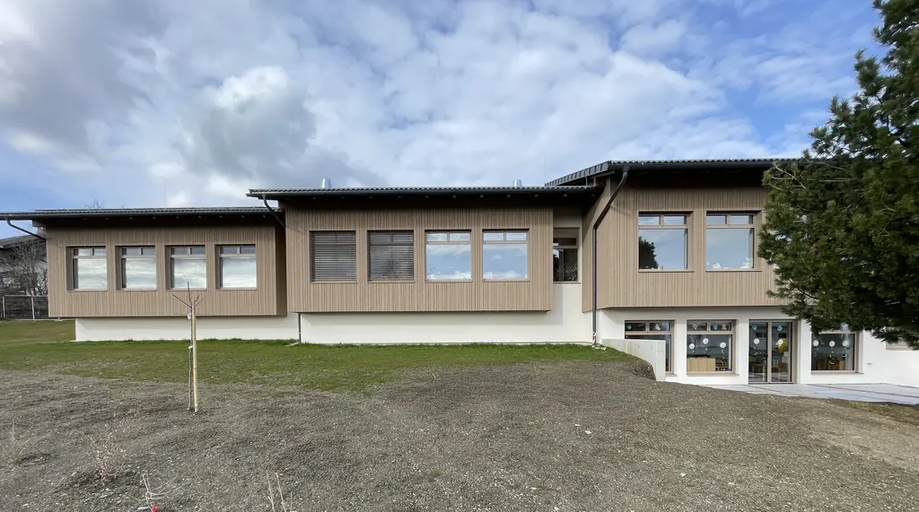 Die Gemeinde Diex in Kärnten hat eine thermische Generalsanierung des Volksschul- und Kindergartengebäudes im gleichnamigen Ort vorgenommen. Das Gebäude wurde 1968 errichtet und steht in einer sehr schönen Südhanglage. Die Sanierung bereinigt die über Jahrzehnte erfolgten Adaptionen am Gebäude und schafft eine klare Aufteilung der neuen Funktionen. Kindergarten, Volksschule, Nachmittagsbetreuung und Gymnastikraum wurden zeitgemäß, auch in Hinblick auf die ökologische und ökonomische Nachhaltigkeit, neu organisiert. Der Baukörper mit seiner bestehenden räumlichen Struktur wurde qualitätsvoll weiterentwickelt und das erforderliche Raumprogramm verwirklicht. In dem neu gestalteten Bildungszentrum entstanden aktuelle zeitgemäße Standards für die heutige pädagogische Arbeit mit unseren Kindern.