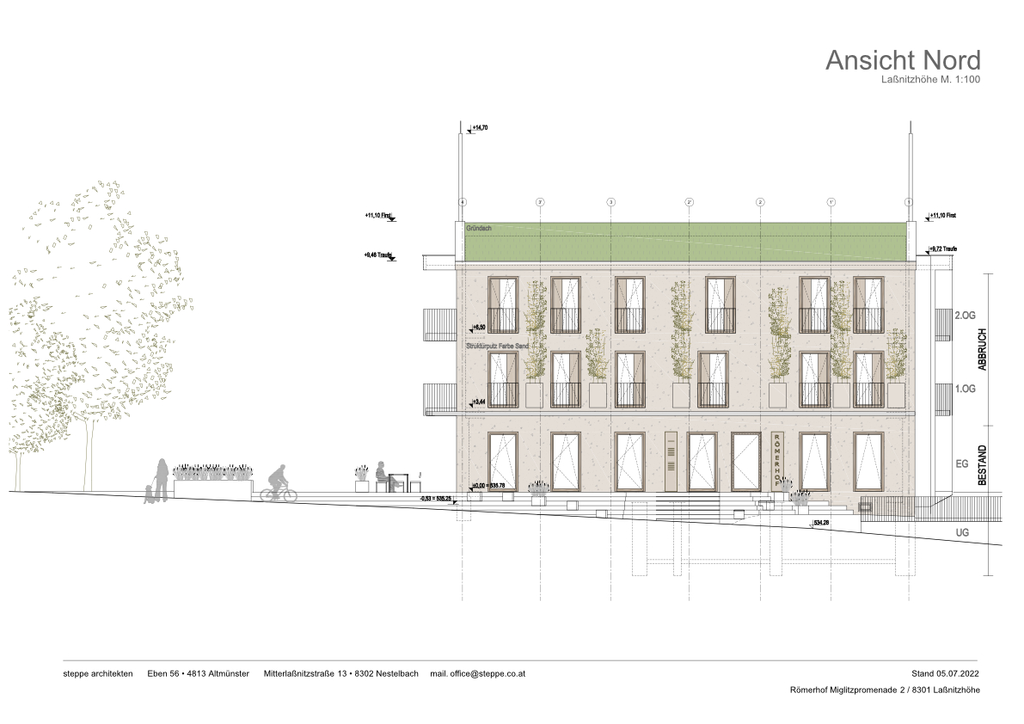 Die älteste im Zentrum des Kurort Laßnitzhöhe gelegene noch vorhandene Gaststätte (um 1864 erbaut) soll nach ihrer Schließung 2015 wieder als Gaststätte mit Beherbergungsbetrieb revitalisiert werden und trägt somit wesentlich zum Erhalt eines belebten Ortskernes bei. Dabei wird Wert auf eine nachhaltige Haustechnik (erneuerbarer Nahwärmeanschluss, PV-Anlage, Regenwassernutzung), ökologische Baustoffe, eine Fassaden- und Dachbegrünung und Reduzierung der Bodenversiegelung auf das erforderliche Minimum gelegt.