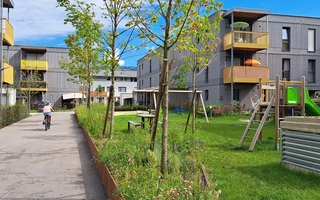 Der klimaaktiv Kriterienkatalog für Siedlungen und Quartiere fasst alle relevanten Kriterien zusammen und ist öffentlich zugänglich und kostenfrei verfügbar. Die Kriterien sind in sechs Handlungsfelder gegliedert. In jedem Handlungsfeld haben österreichische Gemeinde- und Städteverantwortliche, Projektentwickler:innen und Bauträger sowie Beratende und Planende bereits zahlreiche Maßnahmen umgesetzt. Hier finden Sie – strukturiert nach Handlungsfeld – eine Auswahl an Beispielen, wie jedes Handlungsfeld in der Praxis umgesetzt werden kann.