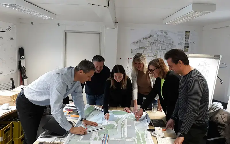 Wenn Planende, Beratende, Projektentwickler:innen und Bauträger sowie Gemeinde- und Städteverantwortliche gemeinschaftlich an einem Projekt arbeiten, wird daraus ein Erfolgsprojekt. Die Ausprägungen der Zusammenarbeit können dabei recht unterschiedlich sein und reichen von der klassischen Steuerungsgruppe (in der Regel bestehend aus Bauträger und Gemeinde) bis hin zum soziokratisch organisierten Lenkungskreis. Der soziokratische Ansatz basiert auf den vier Prinzipien Konsens, Kreisorganisation, doppelte Verknüpfung und offene Wahl.