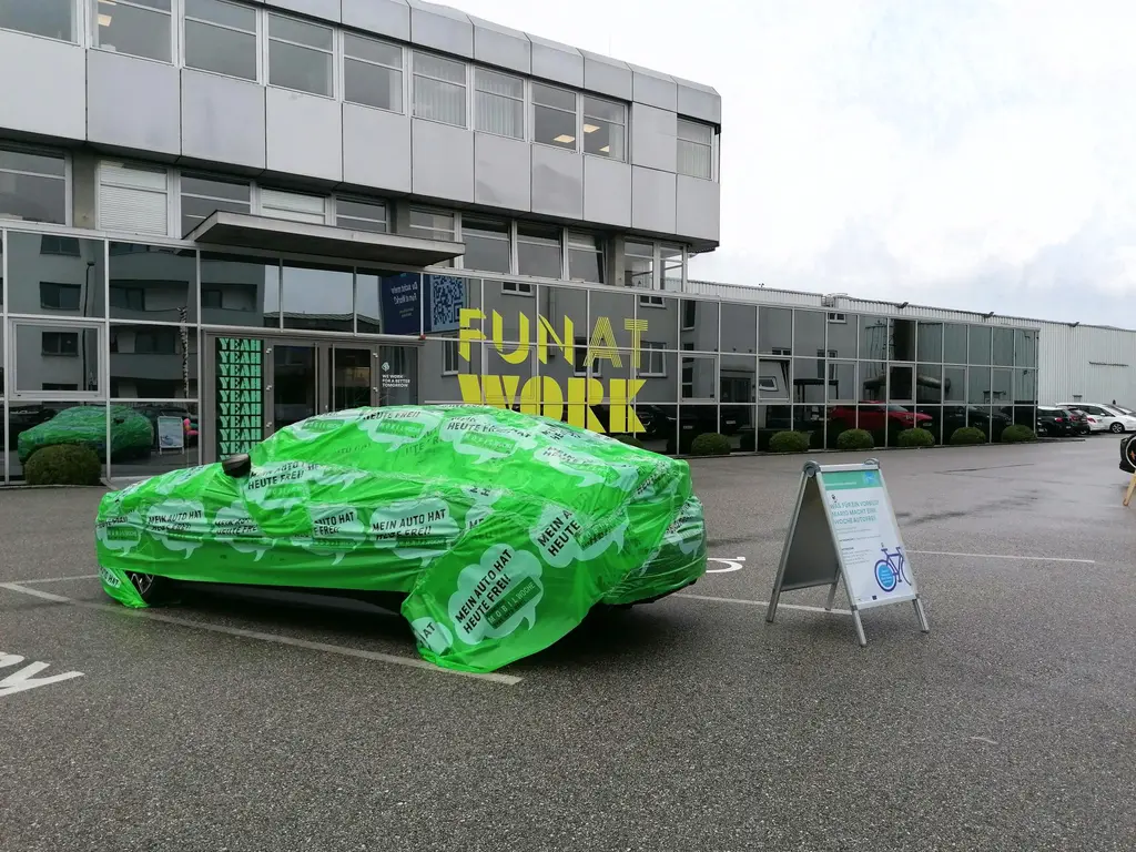 Die ganze Woche gab es Aktionstage, an denen die Mitarbeiter:innen für den Weg zur Arbeit die zehnfache Menge an Punkten in der Mobilitätsapp erhielten. Zum Beispiel wenn am Montag - am Fahrradtag - der Weg zur und von der Arbeit mit dem Fahrrad zurückgelegt wurde.