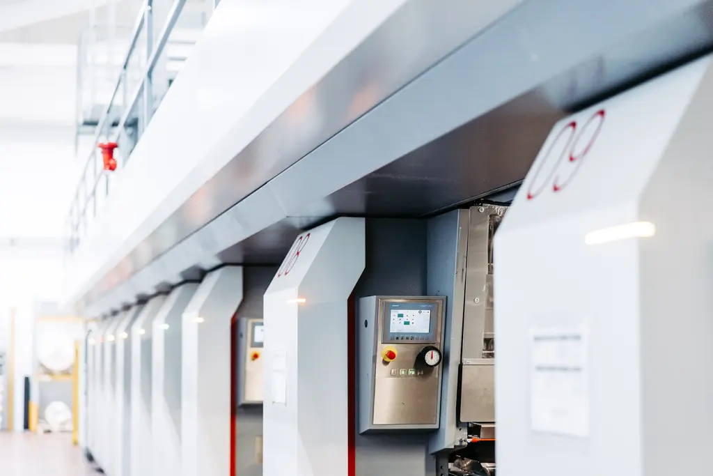 Beim Drucken und Kaschieren wird Lösemittel in den Trocknern freigesetzt, von einem warmen Luftstrom aufgenommen und zum großen Teil in Richtung einer Lösemittelrückgewinnungsanlage transportiert. In einem ersten Schritt wird die lösemittelhaltige Luft gekühlt und dann über Aktivkohle-Adsorber geführt. Die Aktivkohle adsorbiert das Lösemittel aus dem belasteten Abluftstrom. Der gereinigte Abluftstrom wird anschließend über einen Kamin an die Umwelt abgegeben.