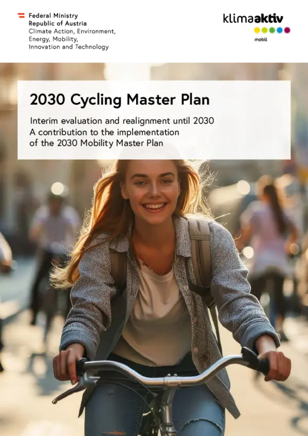 The Cycling Master Plan 2030 serves as the strategic foundation for promoting cycling in Austria up to the year 2030. The updated 2024 edition functions as an interim evaluation and further development of the previous Cycling Master Plan and represents an important contribution to the implementation of the Mobility Master Plan 2030. The plan was developed in cooperation with federal provinces, municipalities, and relevant stakeholder groups, and provides the framework for concrete programmes and funding initiatives up to 2030. Its goal is to significantly increase the share of cycling in overall transport, enhance the quality of life in cities and communities, and make a substantial contribution to achieving the climate targets in the transport sector.