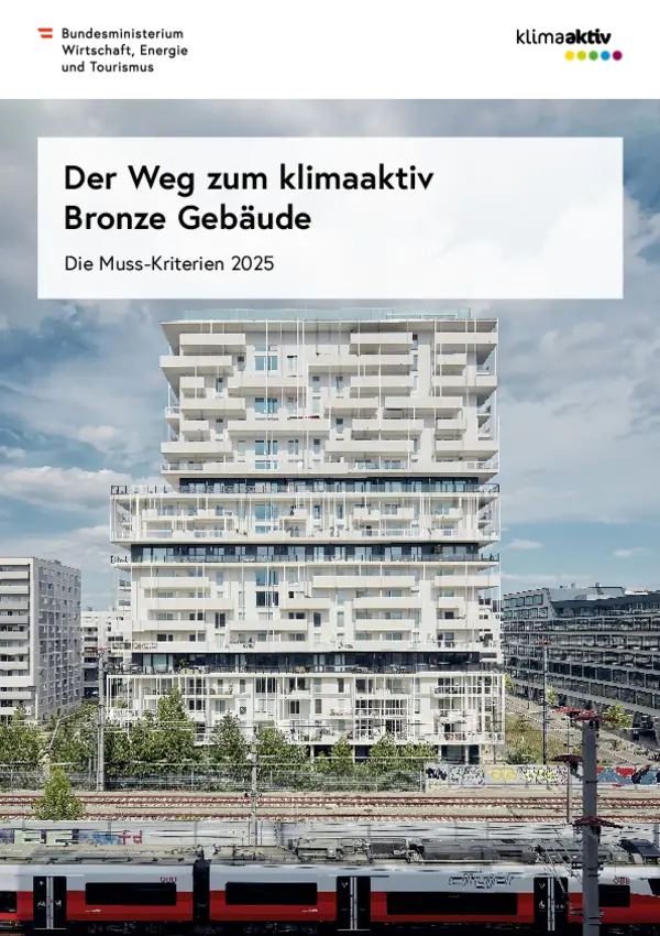 Die vorliegende Broschüre (Version 2025 versammelt die Mindestanforderungen für alle Gebäudetypen für Neubau und Sanierung. Nur wenn ein Gebäude alle klimaaktiv Muss-Kriterien erfüllt, kann ein Gebäude den Qualitätsstandard klimaaktiv BRONZE erreichen. Die Muss-Kriterien definieren die Mindestanforderungen eines nachhaltigen Gebäudes basierend auf dem klimaaktiv Gebäudestandard und sie sind gegenüber dem vollständigen klimaaktiv Kriterienkatalog stark gekürzt.