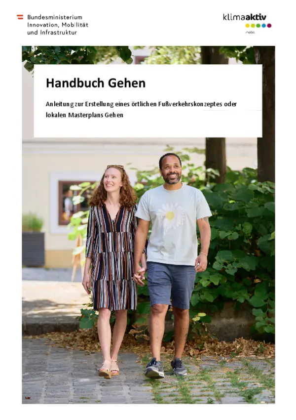 Der Bund stellt Fördermittel für Infrastrukturmaßnahmen im Bereich der Aktiven Mobilität zur Verfügung. Voraussetzung für die Inanspruchnahme von Bundesförderungen für den Fußverkehr ist die Erstellung eines lokalen Fußverkehrskonzeptes bzw. eines lokalen Masterplans Gehen. Dieses Handbuch dient als Arbeitsbehelf zum Förderleitfaden des Aktionsprogramms klimaaktiv mobil Aktive Mobilität und soll insbesondere die Praktiker:innen in den Gemeinden und Städten unterstützen.