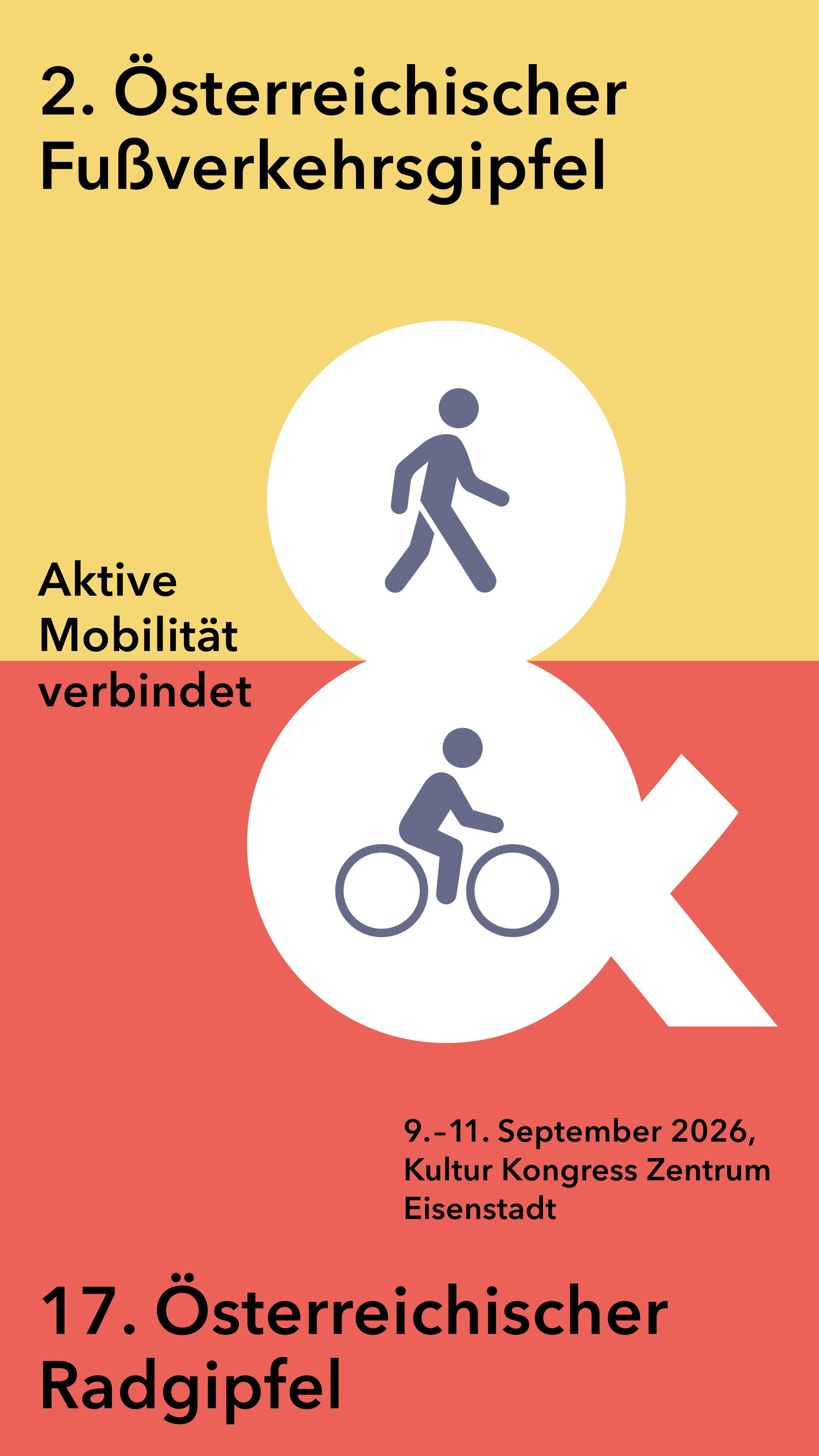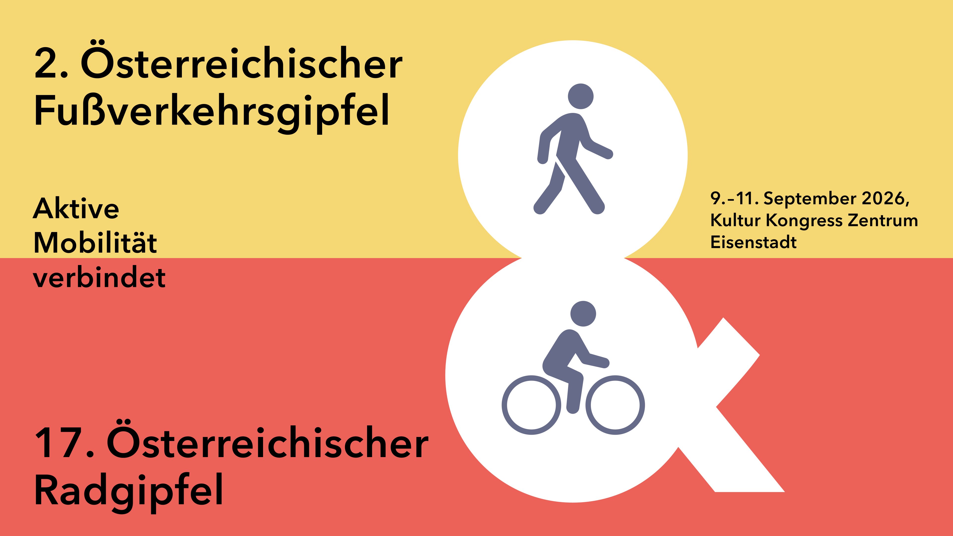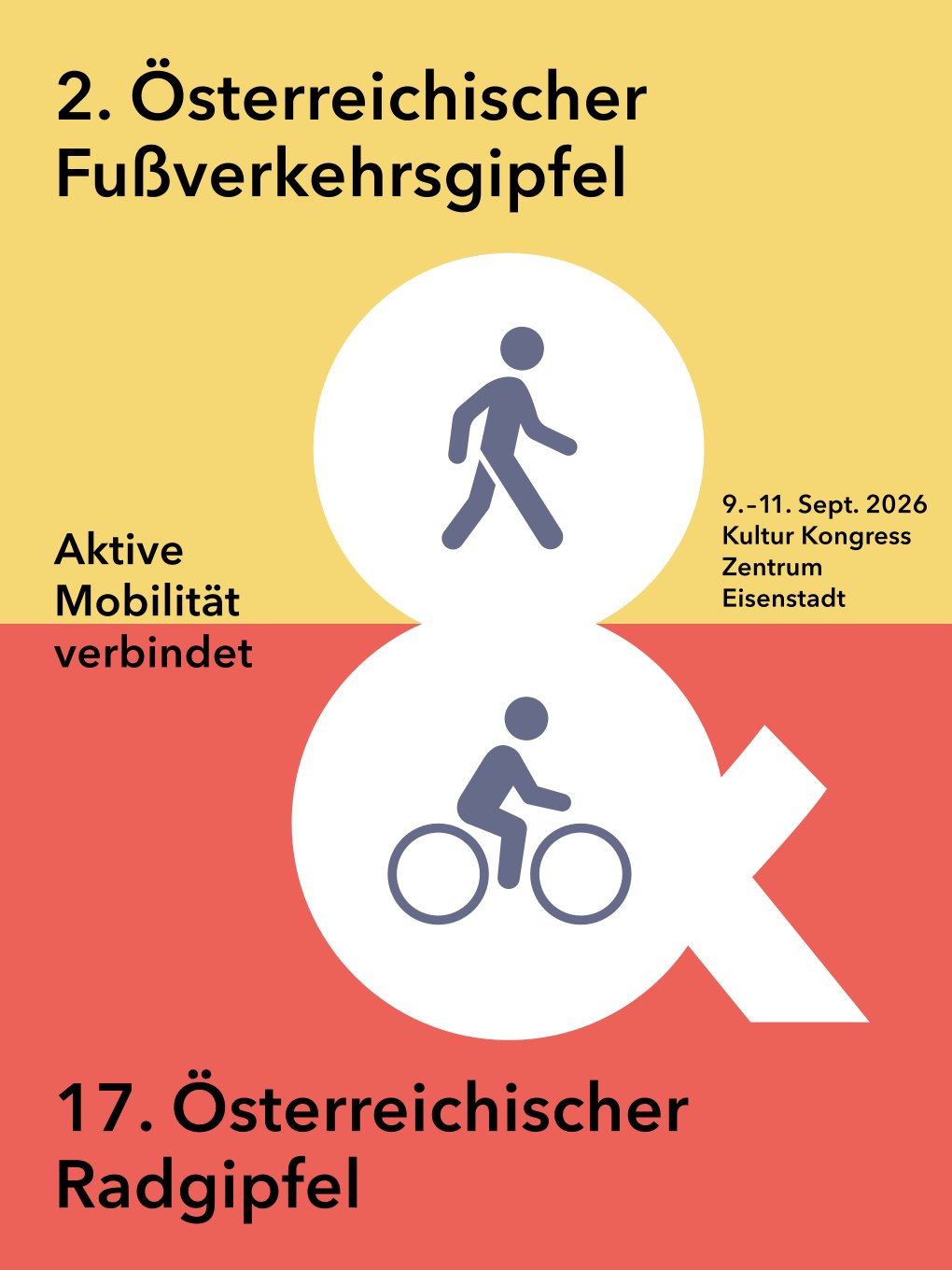 Der 2. Österreichische Fußverkehrsgipfel und der 17. Österreichische Radgipfel wird durchgeführt in Kooperation mit der Stadt Eisenstadt, dem Land Burgenland und dem Bundesministerium für Innovation, Mobilität und Infrastruktur im Rahmen der Klimaschutzinitiative klimaaktiv mobil.