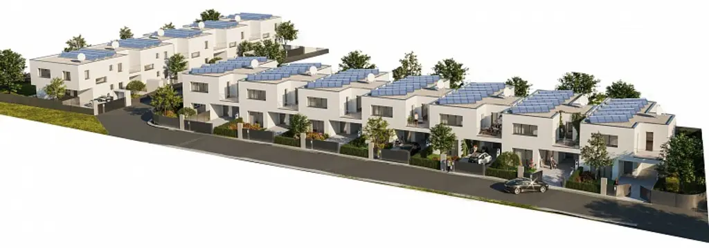 Die Reihenhausbebauung unterteilt sich in zwei Abschnitte.