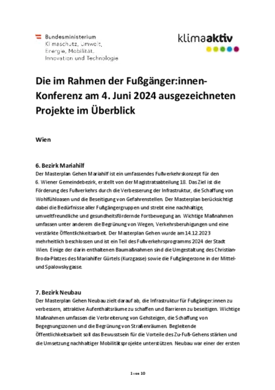 Im Rahmen der Fußgänger:innen-Konferenz ausgezeichneten Projekte im