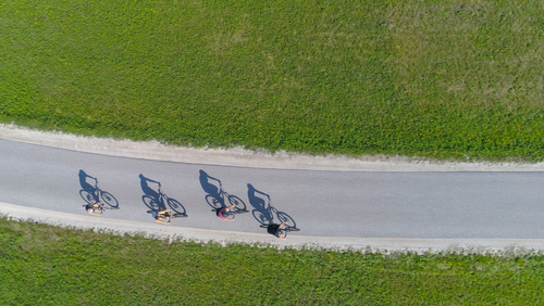 Mobilität Mehrere Generationen zu Fuß unterwegs, es scheint die Sonne im Hintergrund © iStock.com/shapecharge